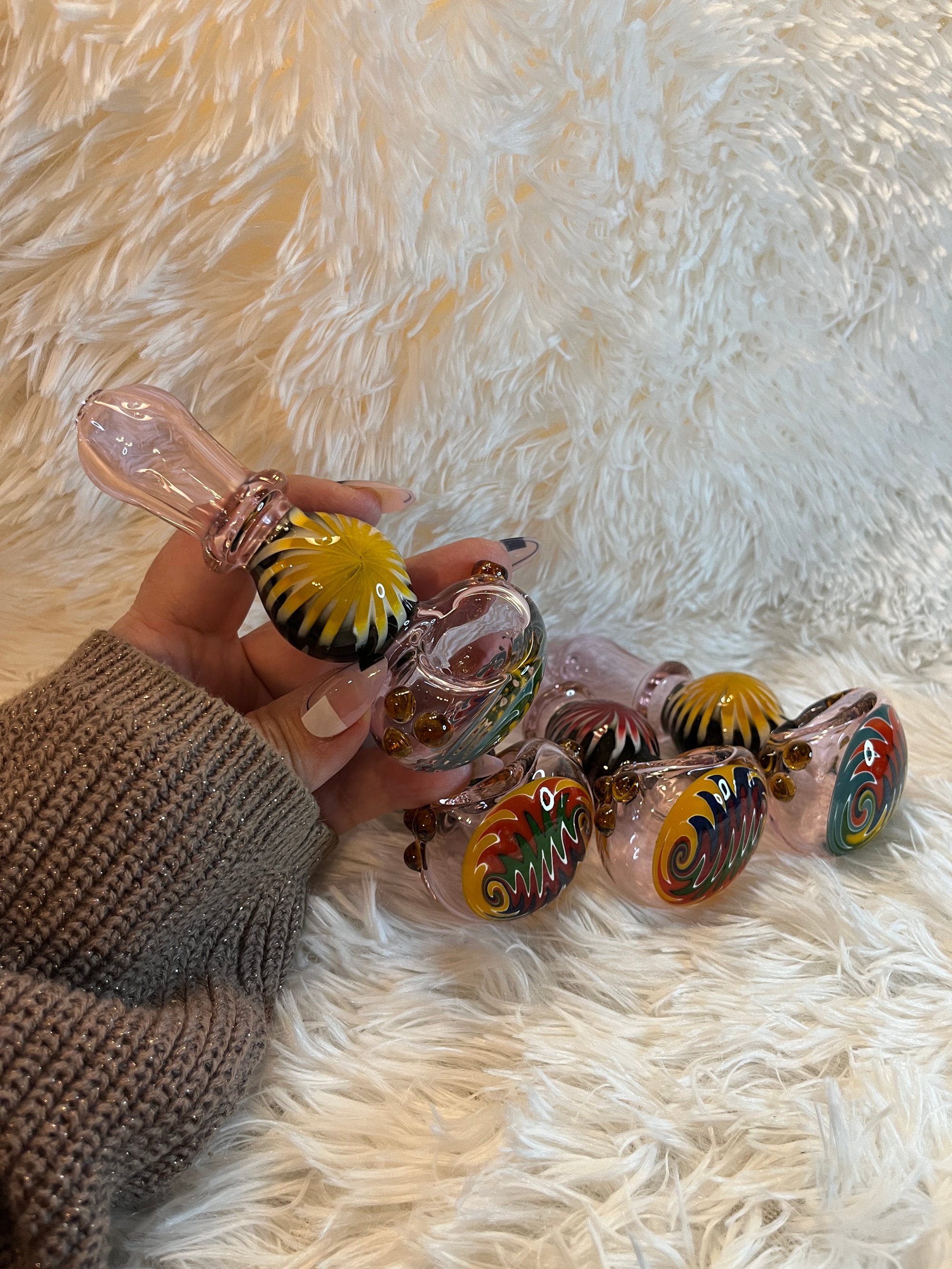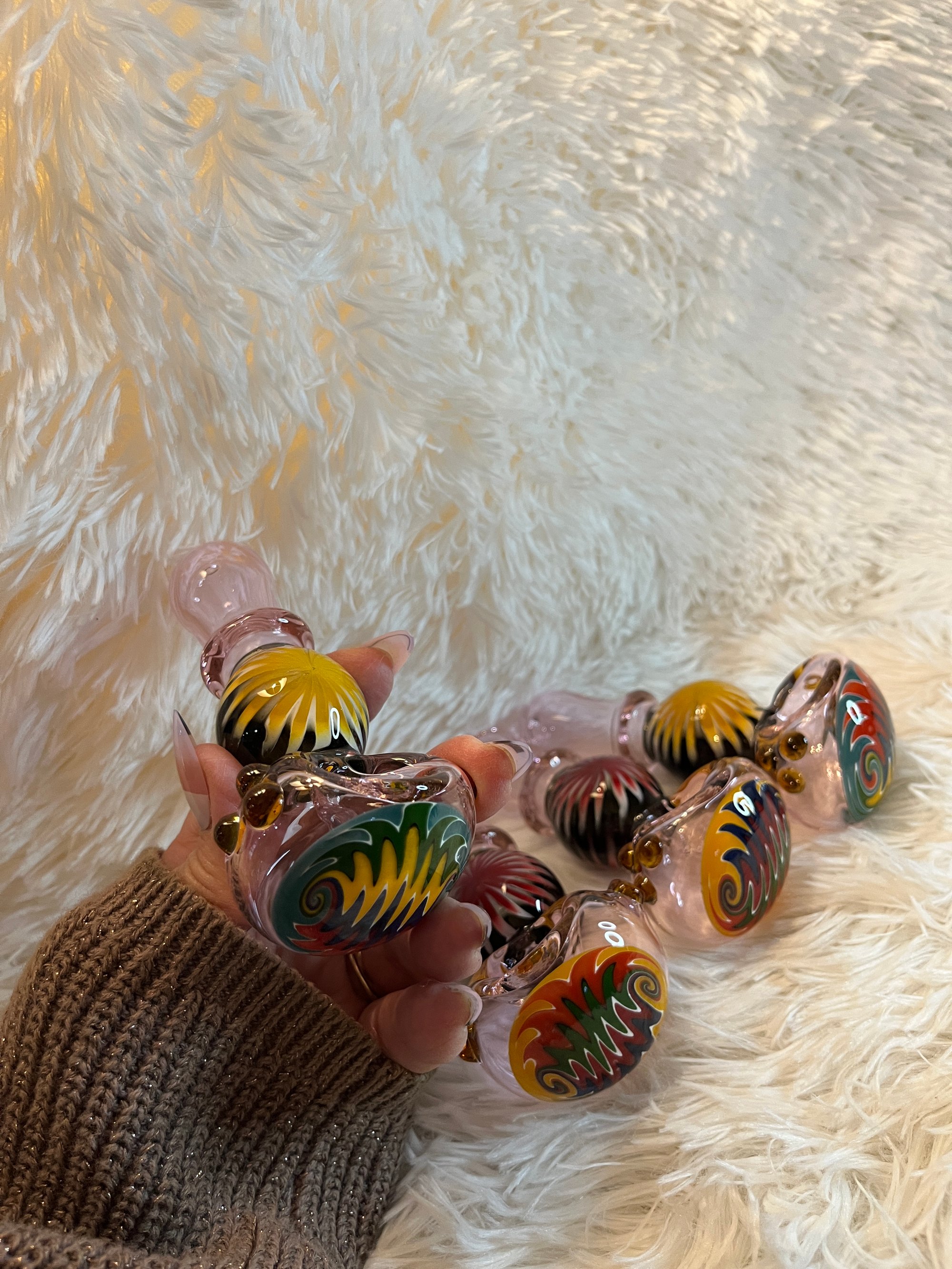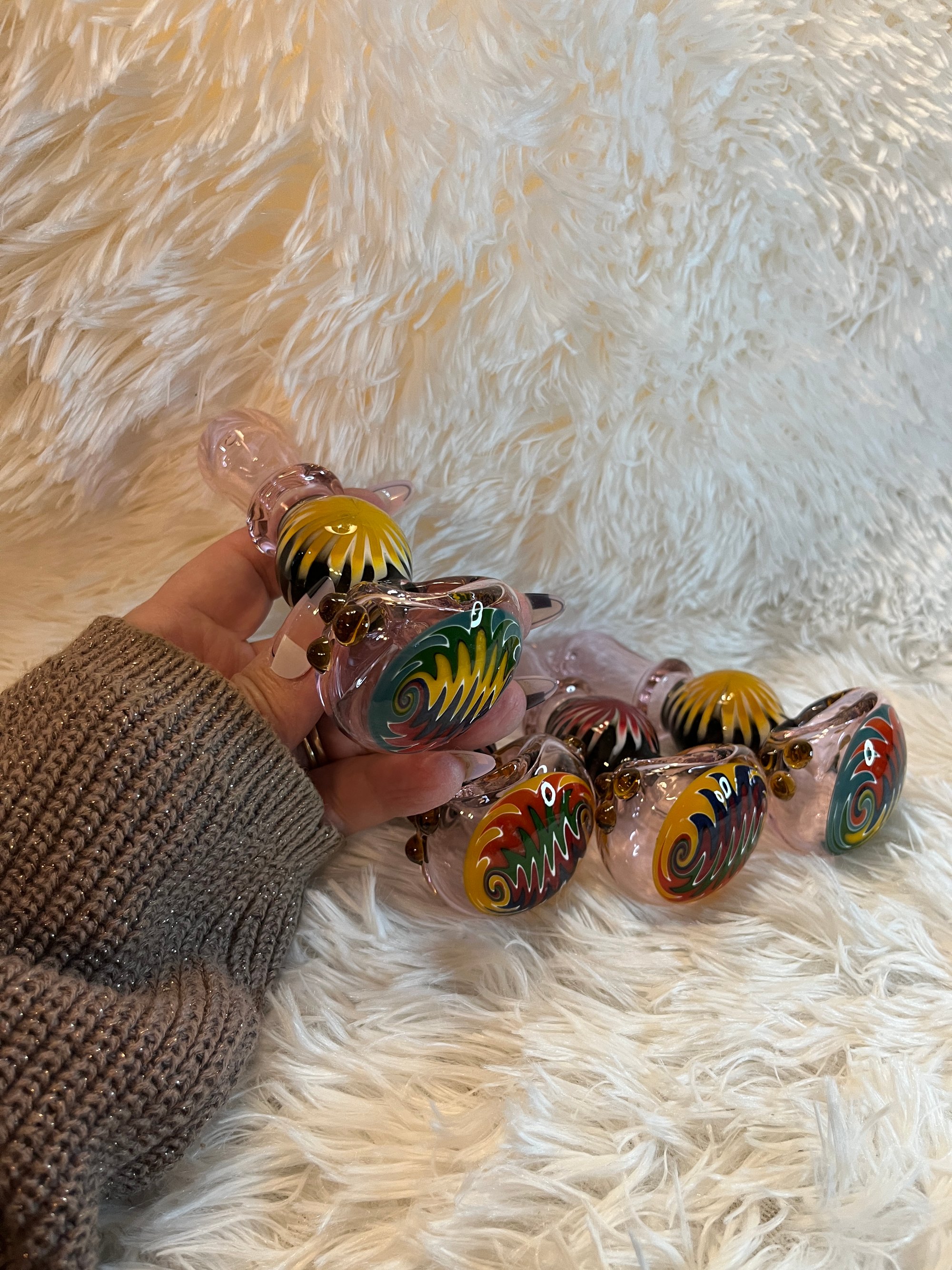 This amazing 4.5-inch Hand Pipe Spoon Reversal Art Wig Wag Glass provides a unique, eye-catching look and feel that you won't find anywhere else. With an impressive blend of colors and shapes, this piece offers an exhilarating experience for all your smoking needs. Get ready to experience an awe-inspiring smoking session! FREE SHIPPING!