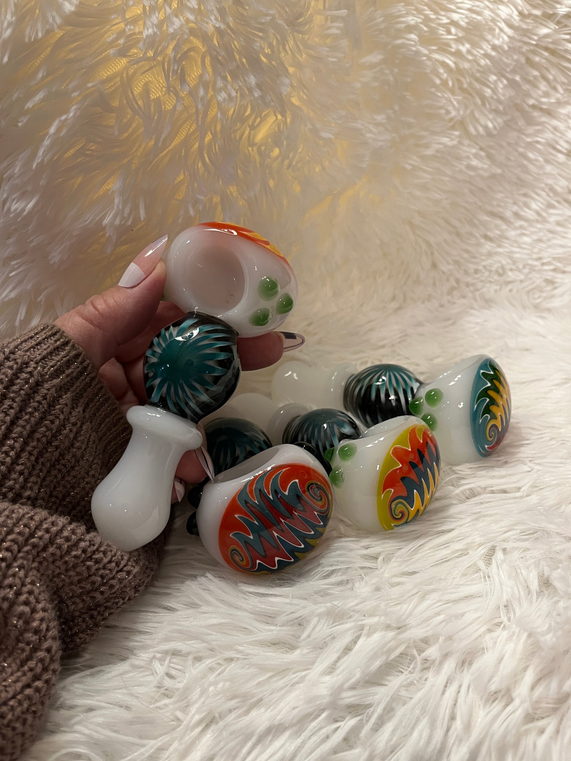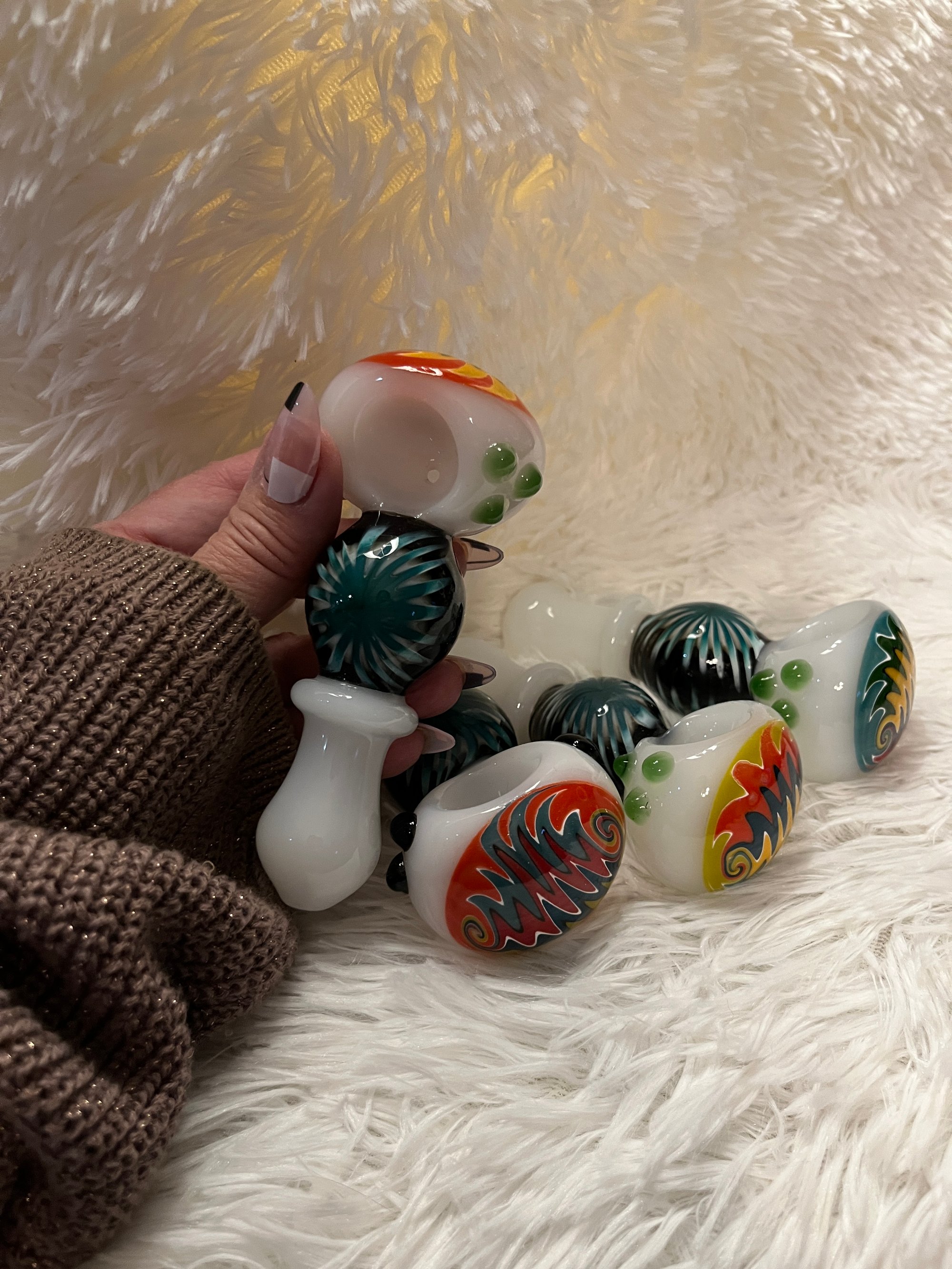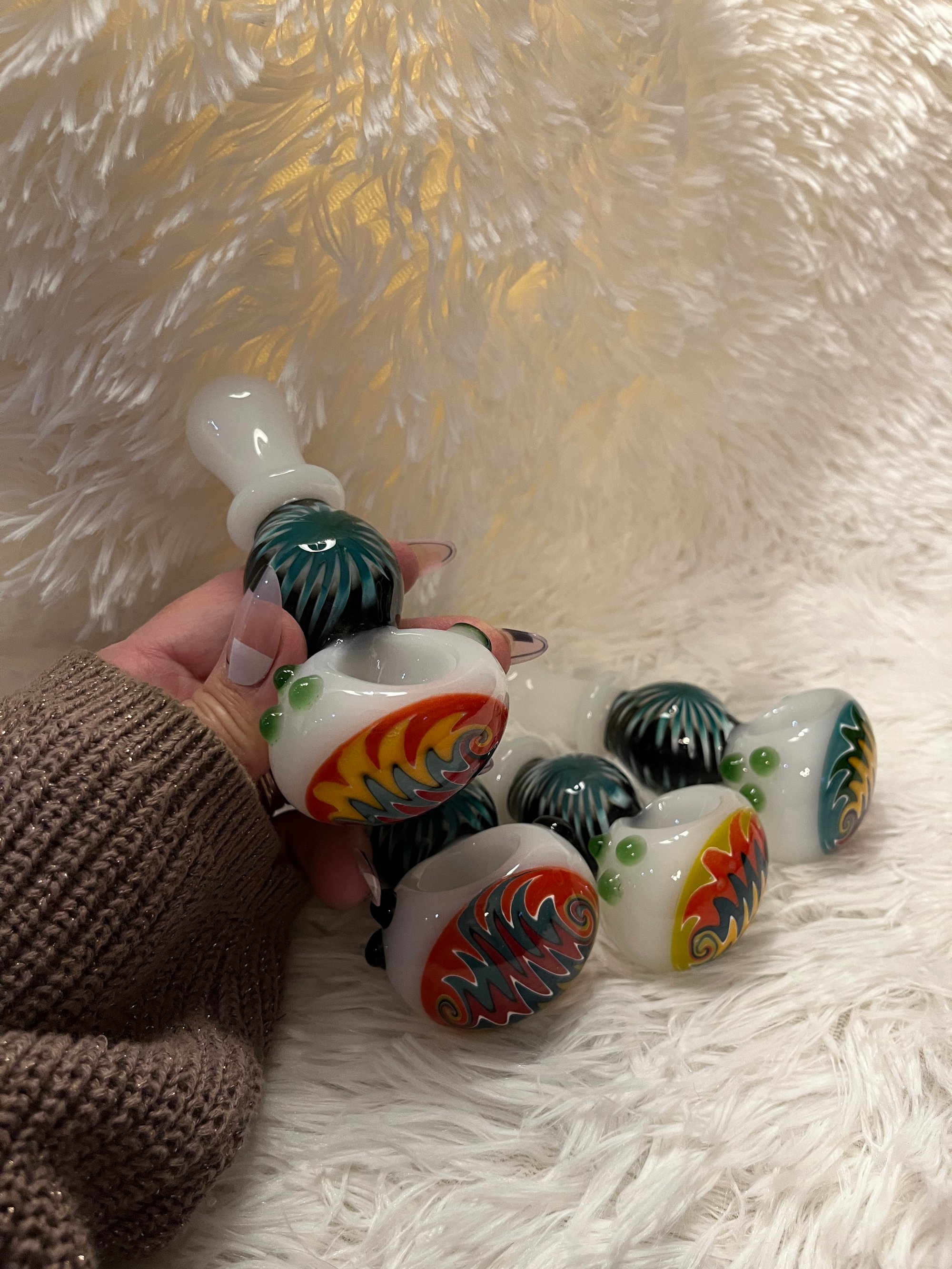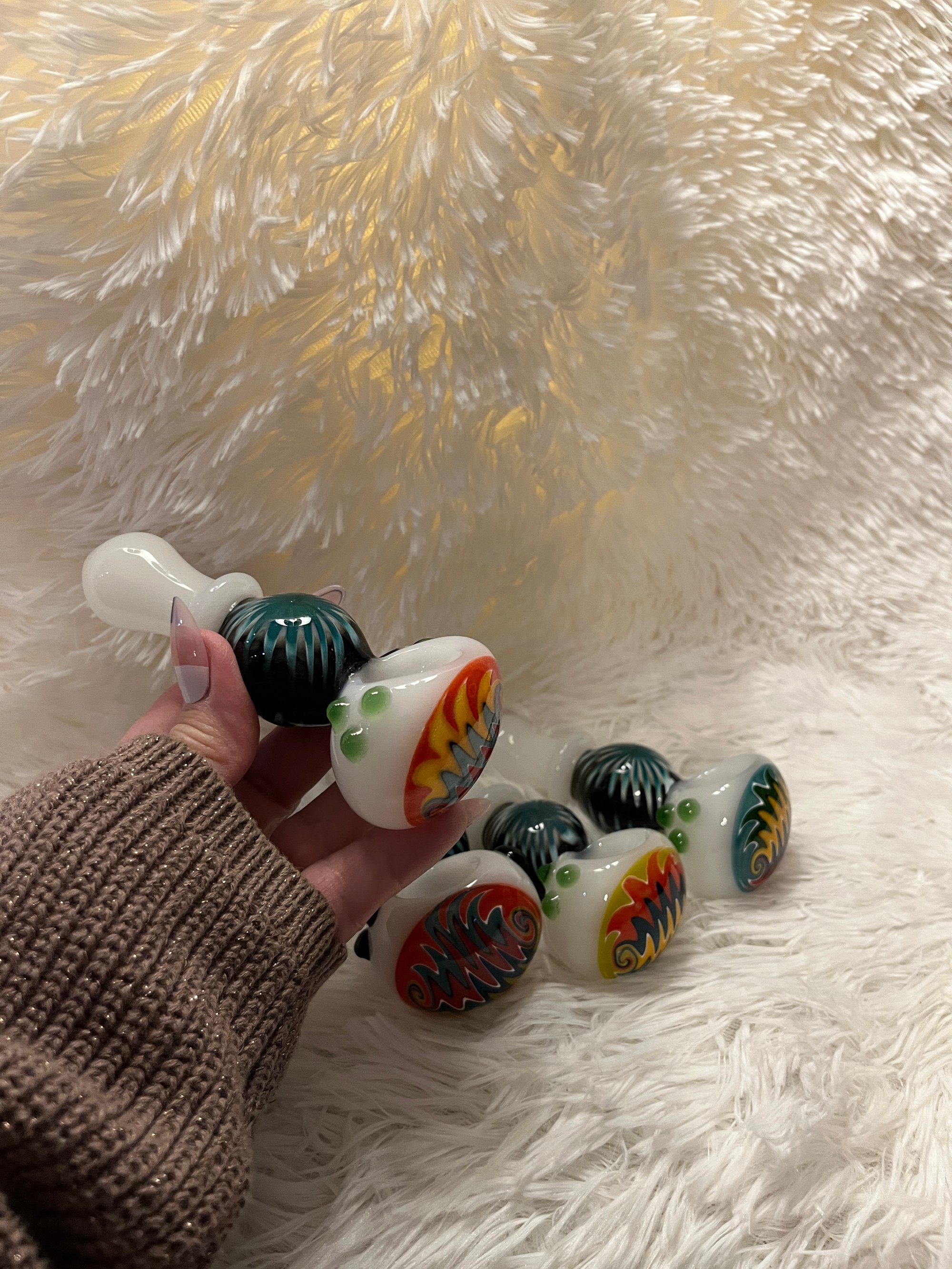 This amazing 4.5-inch Hand Pipe Spoon Reversal Art Wig Wag Glass provides a unique, eye-catching look and feel that you won't find anywhere else. With an impressive blend of colors and shapes, this piece offers an exhilarating experience for all your smoking needs. Get ready to experience an awe-inspiring smoking session! FREE SHIPPING!