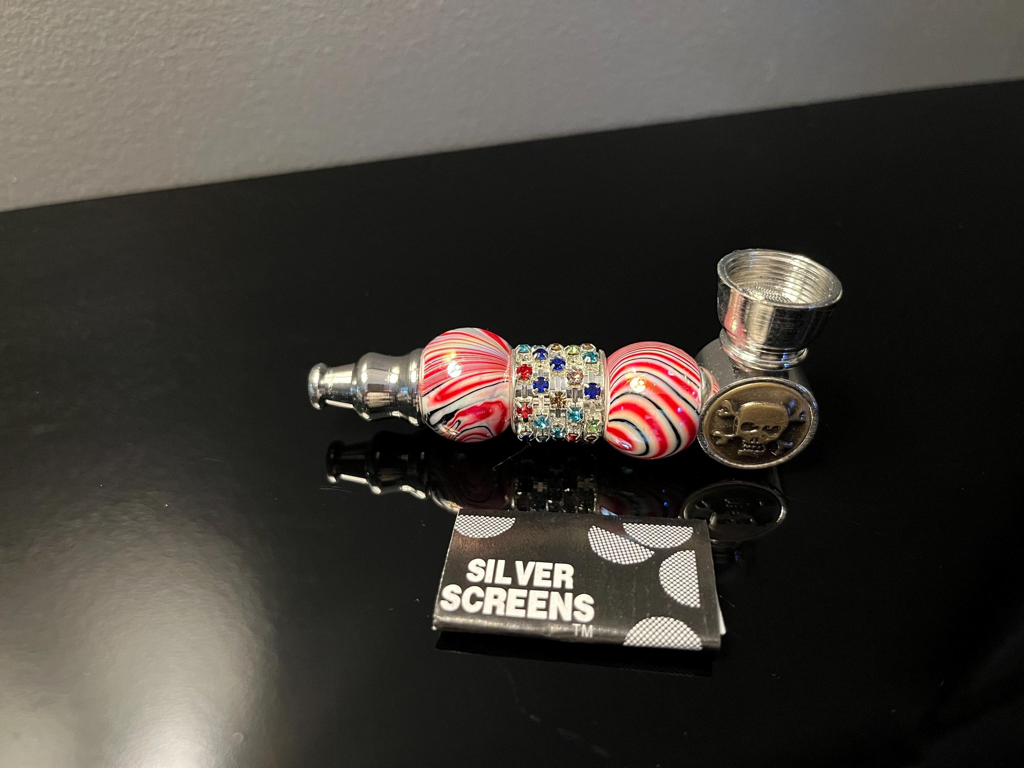 Cute Little Beaded Pipe Decorated With A Skull And RineStones/ Metal Spoon Pipe