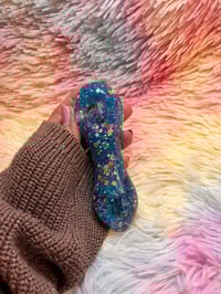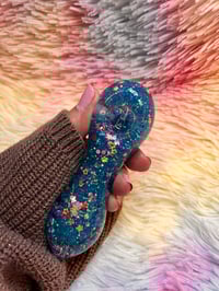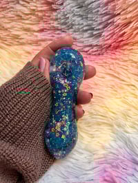 A Beautiful Combination Of Turquoise Glitter With Flowers And Butterflies Freezable Glass Pipe, Thick Glass Pipe, Color Changing Pipe, Glass Tobacco Pipe